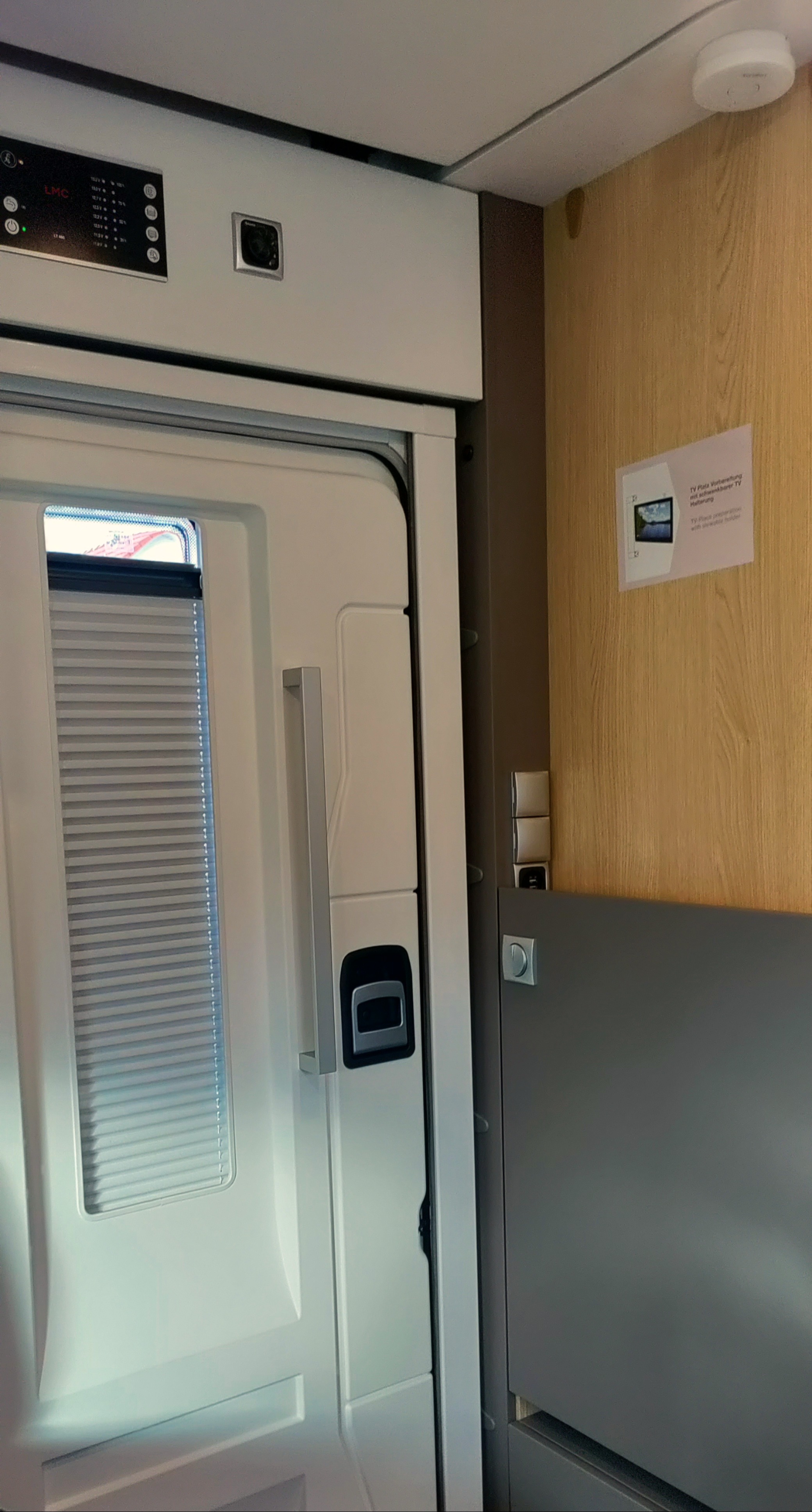 Im abgetrenntem Schlafabteil mit Längsbetten befinden sich auch separat Dusche und WC.