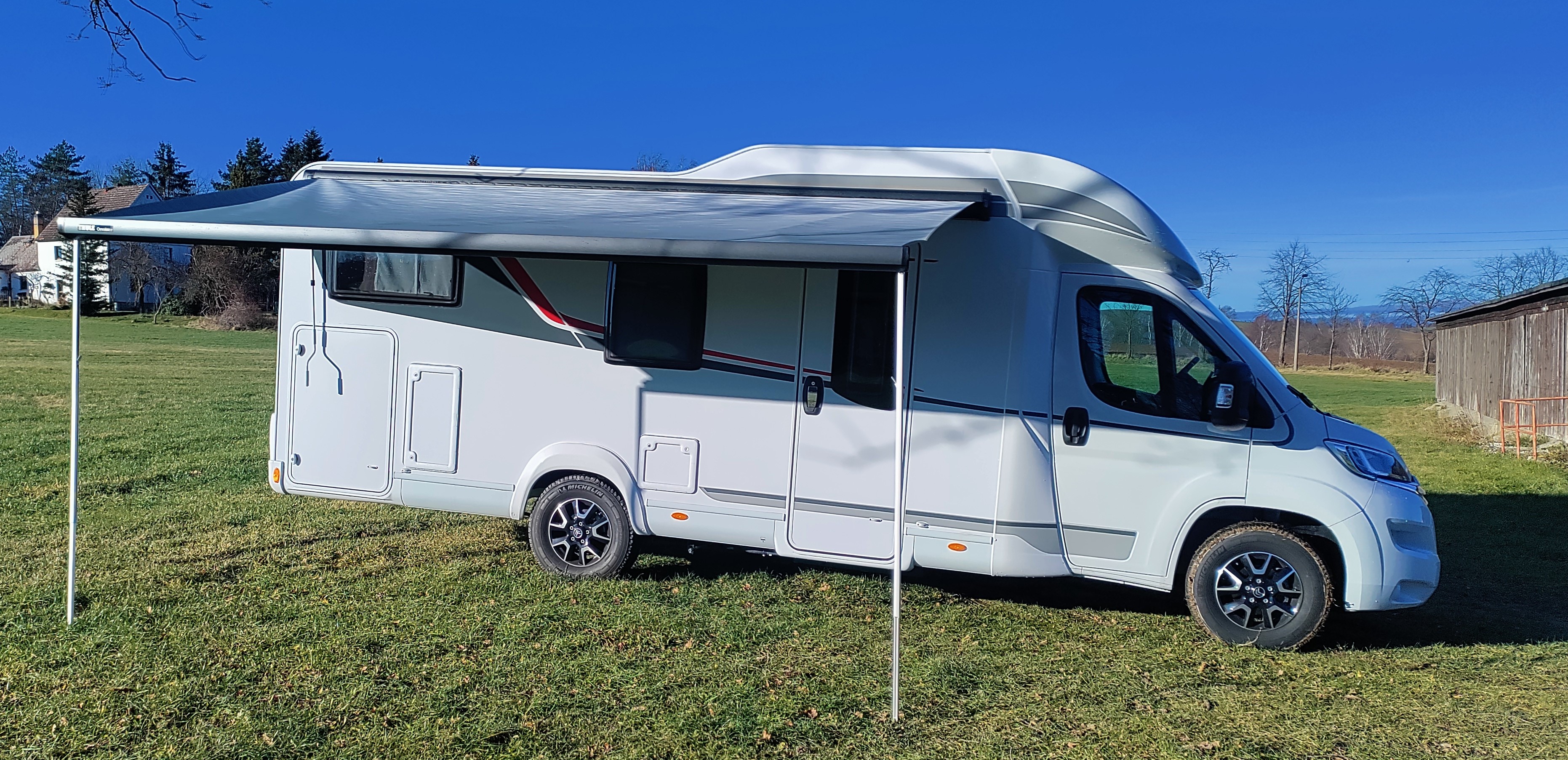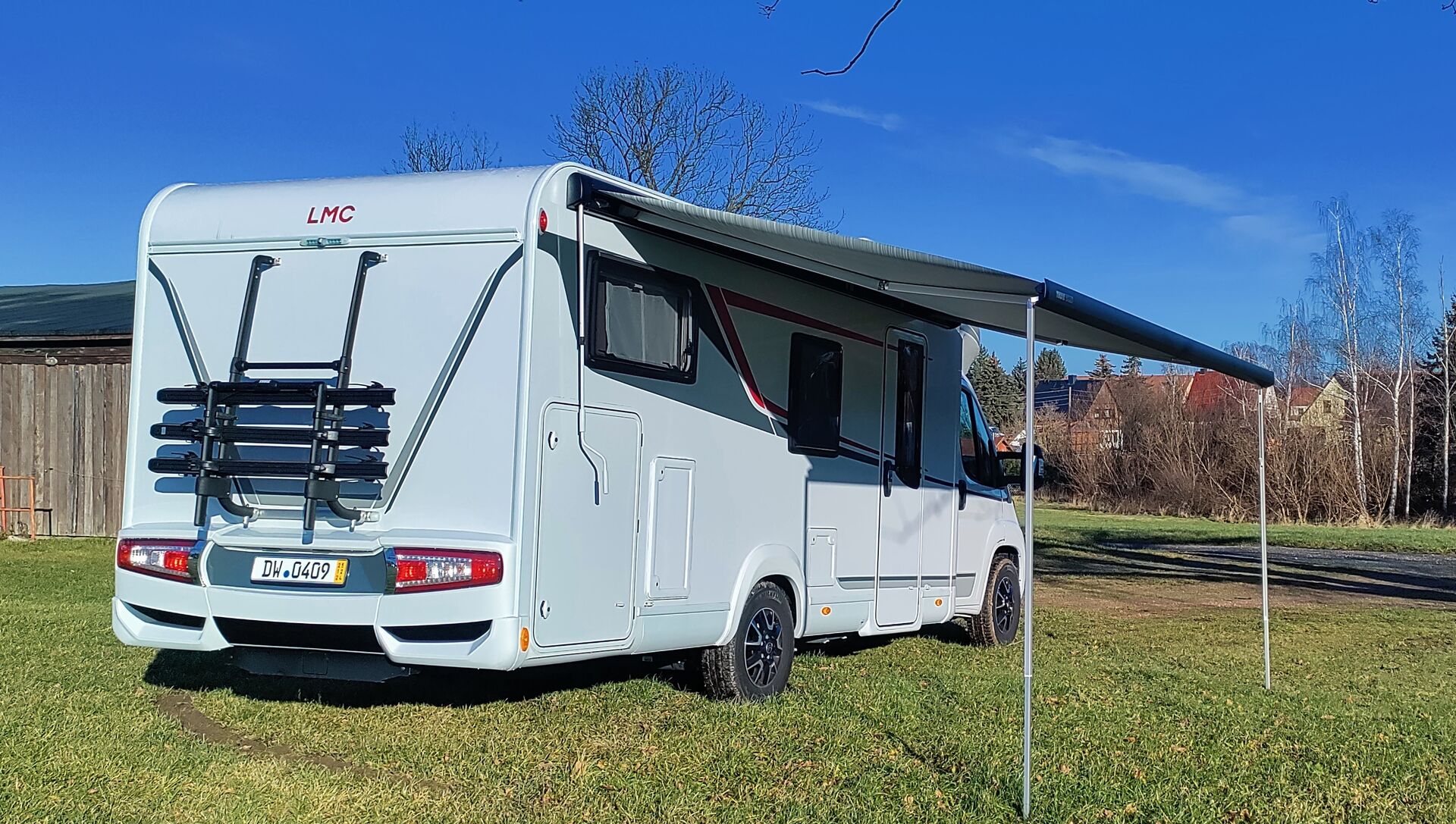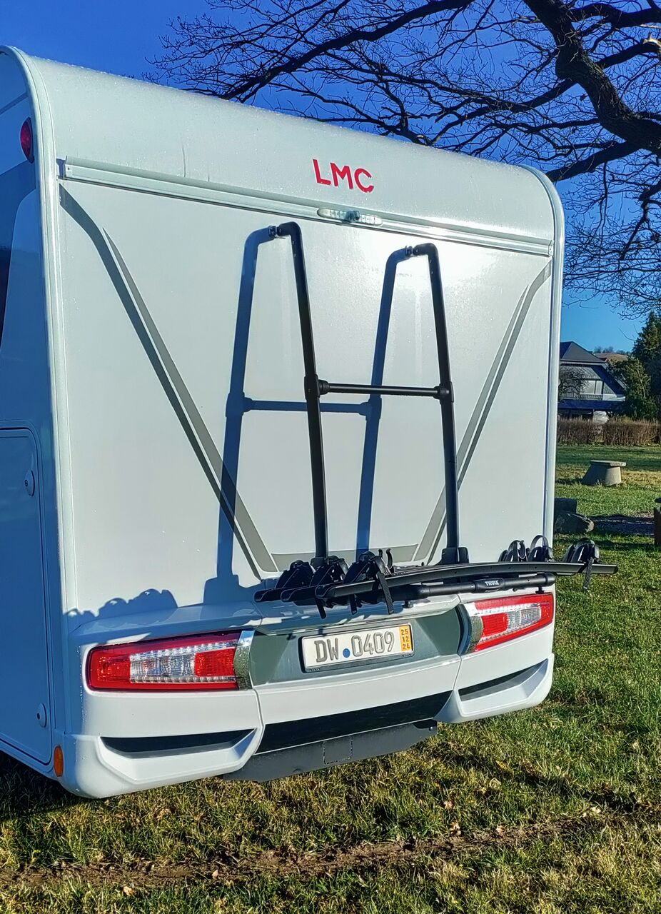 An sonnigen Tagen finden Sie unter der 4,5 Meter breiten Markise Schatten. Auf dem Fahrradträger können bis zu 3 Fahrräder transportiert werden.